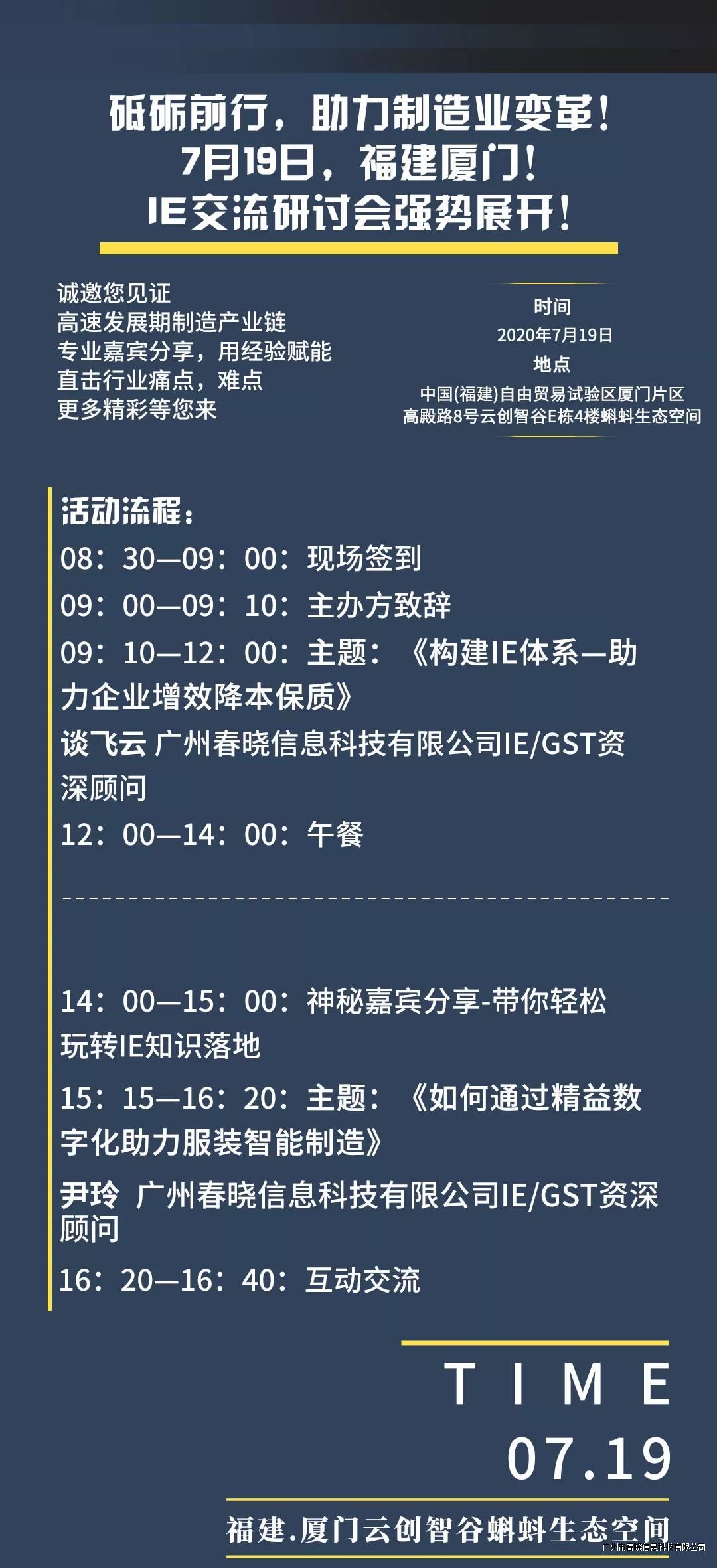 【888官网集团学院】IE交流研讨会将在7月19日(9:00)于厦门湖里区云创智谷E栋4楼蝌蚪生态空间准时开始!